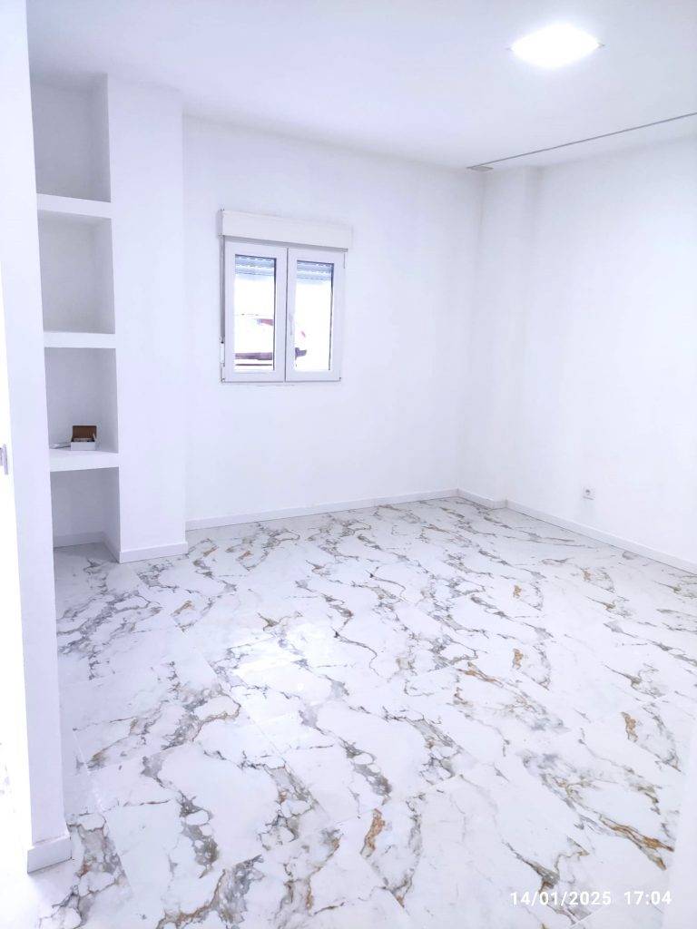 El suelo de toda la casa es tarima, Las ventanas son de aluminio blanco con corredera. Todas las paredes tienen la pintura en liso